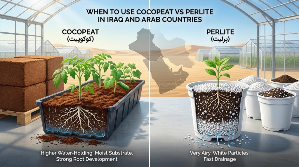 Admen 0 comments Agriculture articles November 21, 2025 21 Nov 2025 When to Use Cocopeat vs Perlite: A Practical Guide for Farms in Iraq and Arab Countries Modern agriculture in Iraq and Arab countries is changing fast. Greenhouses, soilless culture, and i... Continue reading
